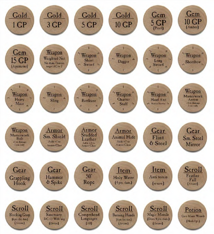 This is a complete set of all 108 Standard Pack C/UC/R Wooden 2006 True Dungeon tokens. It includes the Wooden version of all 36 Common, 36 Uncommon, and 36 Rare tokens!
